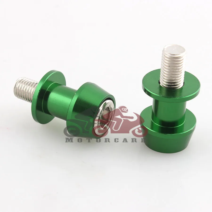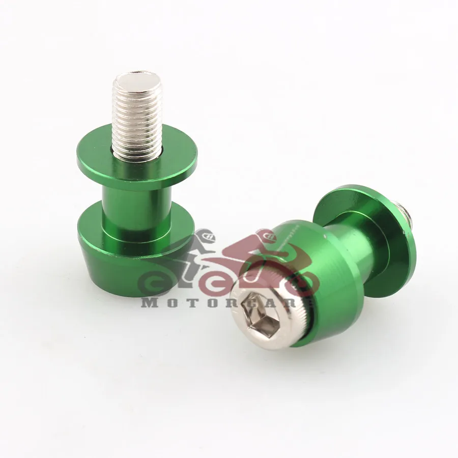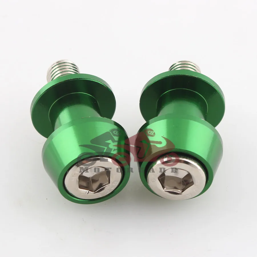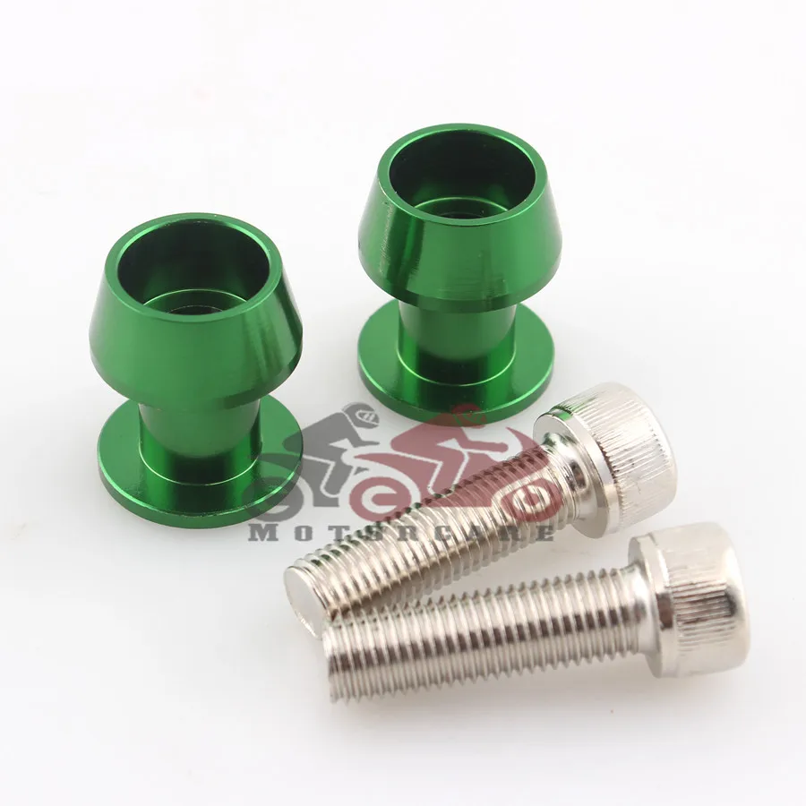 Green 10mm Motorcycle CNC Rear Stand Swing Arm Spool Sliders Stand Swingarm Bobbins Spools Stands Screws for Motorbike Custom