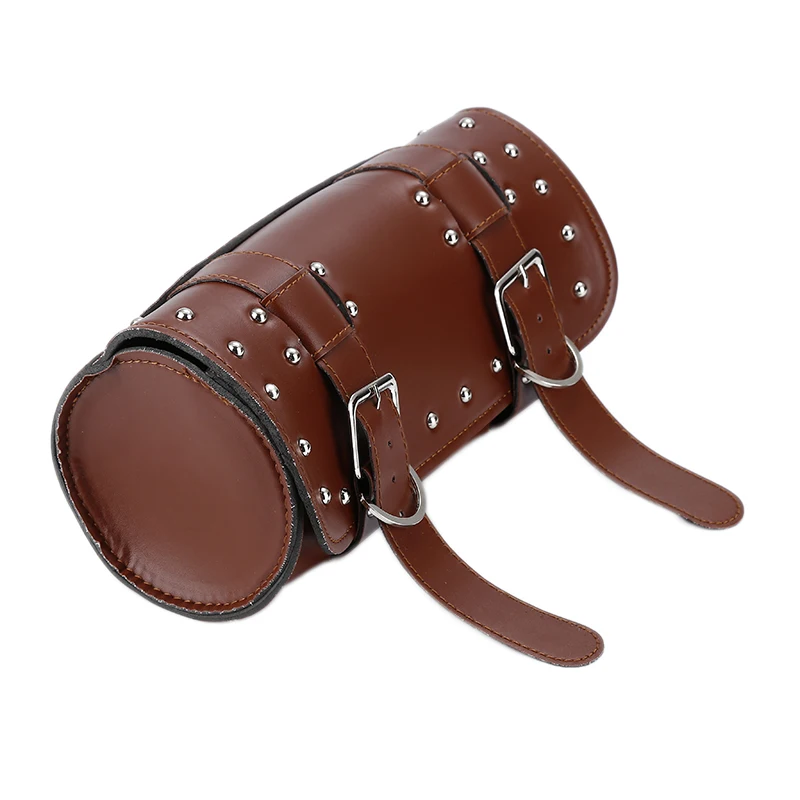 Motorcycle Saddle Bags Leather Motorbike Side Tool Tail Bag PU Luggage for Harley Universal Black/Brown
