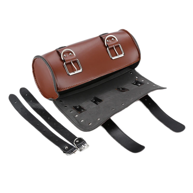 Hawksoar Motorcycle Scooter Universal Saddlebag Saddle PU Leather Roll Tool Bag Brown