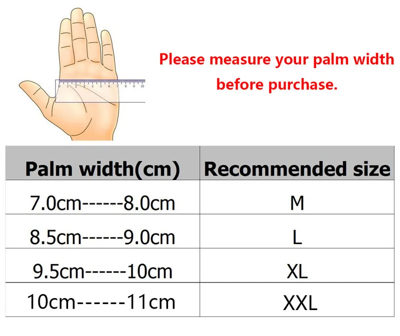 Note: Our gloves are Chinese size, as experience, it is smaller than the EU size, so please kindly measure your hands before purchase, thanks. Pictures