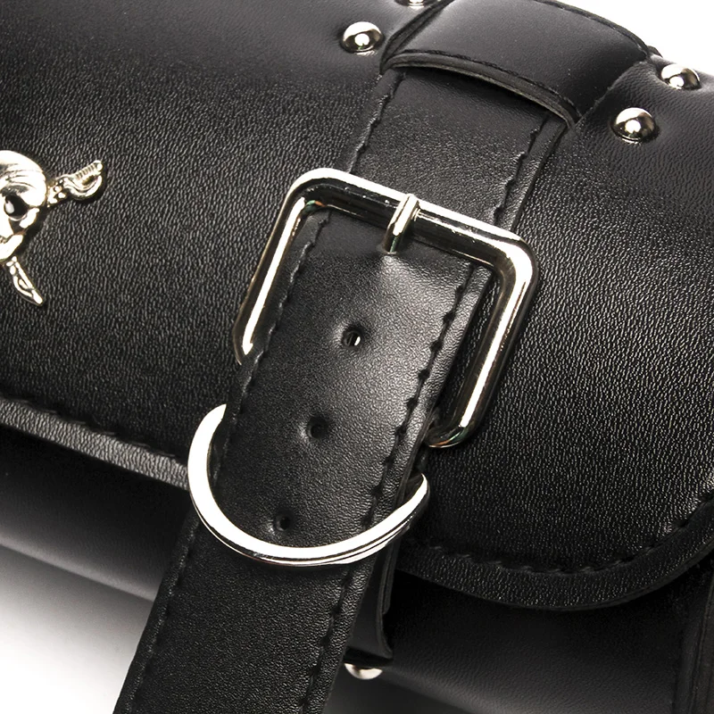 Motorcycle Motorbike Universal Saddlebags Tool bag PU Leather Roll Black Bags Storage container fashion saddle bag accessories